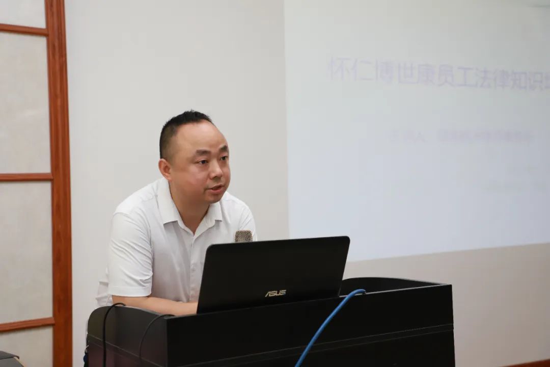 6月19日,2023年鶴城區(qū)第一期博世康中藥調(diào)劑員新型學(xué)徒制培訓(xùn)班在懷仁集團(tuán)總部開班。鶴城區(qū)人力資源和社會保障局副局長趙仲樹、鶴城區(qū)就業(yè)服務(wù)中心主任楊先軍、鶴城區(qū)就業(yè)服務(wù)中心培訓(xùn)部部長易剛生、湖南省博世康中醫(yī)藥有限公司副總經(jīng)理林承鴻、懷仁晉源家庭服務(wù)有限公司常務(wù)副總經(jīng)理向英、懷化市創(chuàng)業(yè)協(xié)會會長、懷仁晉源家庭服務(wù)有限公司副總經(jīng)理符宇君、懷化市懷仁晉源職業(yè)培訓(xùn)學(xué)校校長李慧、鶴州律師事務(wù)所律師向昌職出席開班儀式。來自湖南省博世康中醫(yī)藥公司的60位學(xué)員參加。