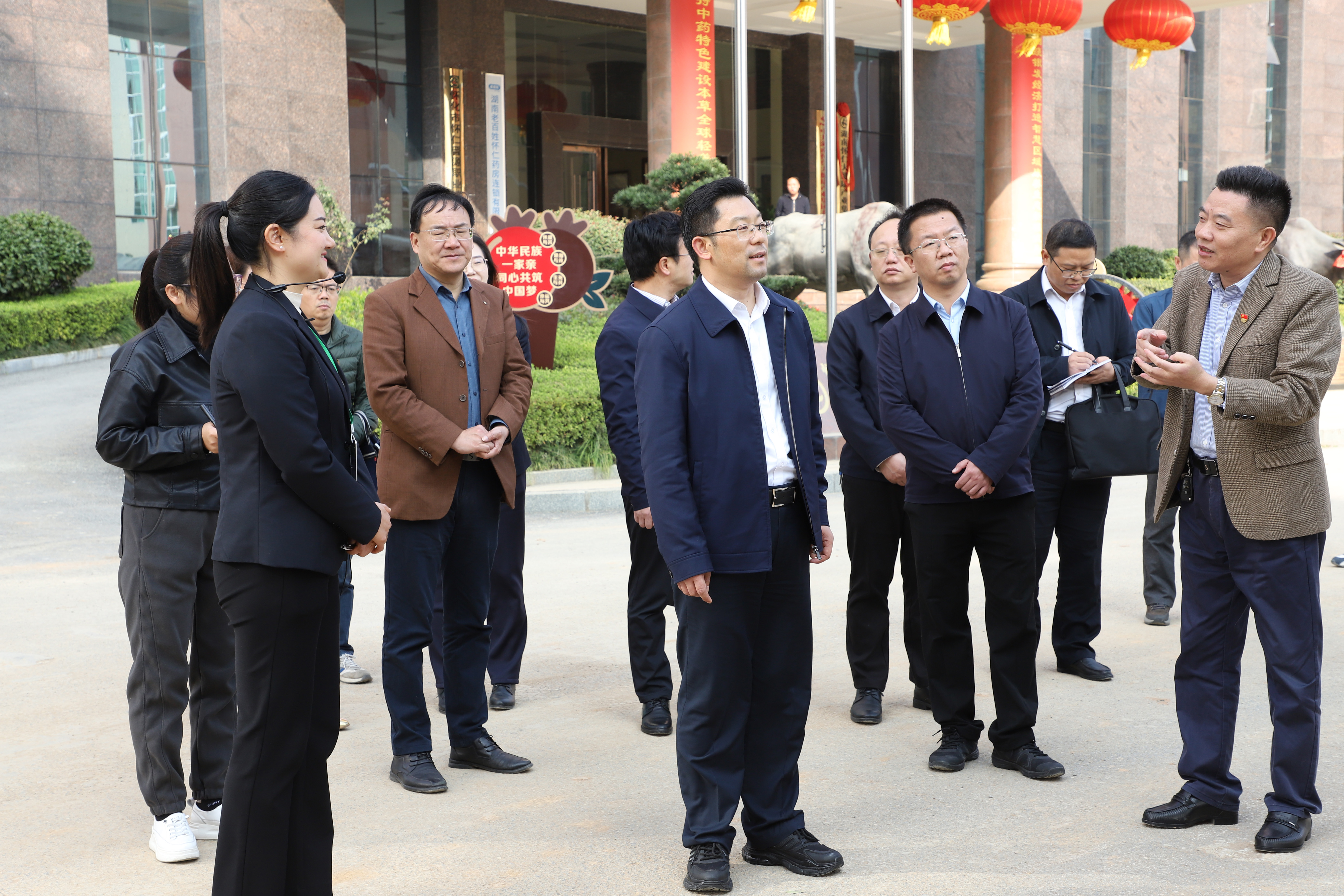 11月24日下午,懷化市委副書記、市委政法委書記賀遵慶來到懷仁集團總部調(diào)研。市委副秘書長林確清,市委政研室副主任全開仕,市委政法委政治部主任、市中醫(yī)藥產(chǎn)業(yè)鏈辦副主任楊正湘,鶴城區(qū)委副書記易昌壁,懷化市中藥材辦專職副主任、市中醫(yī)藥產(chǎn)業(yè)鏈辦副主任羅文彪,及相關(guān)職能部門負責(zé)人參加。受懷仁集團董事長林承雄委托,副總裁舒敏、董事長助理蔣忠權(quán)作熱情接待。