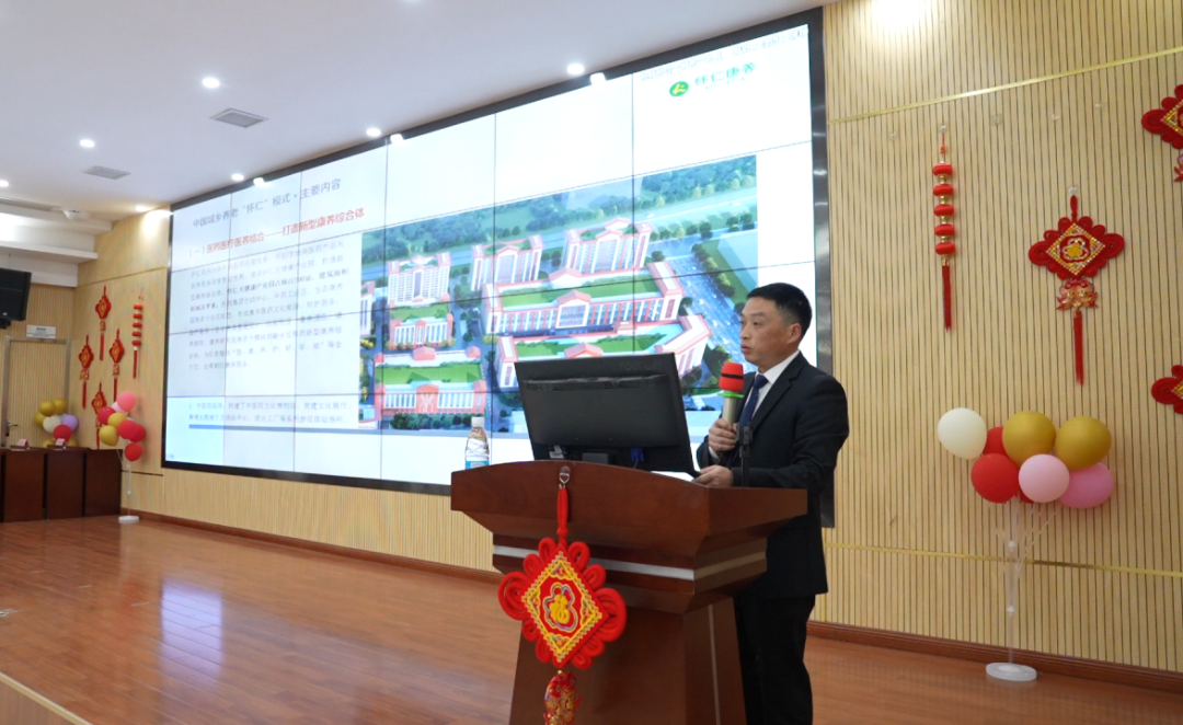 隨后,懷仁醫(yī)養(yǎng)公司副總經理兼平臺運營中心總監(jiān)王祥剛進行了發(fā)言,他以“中國康養(yǎng)·懷仁模式”為主題,介紹了由三大事業(yè)群和三大支撐中心互相融合、相互賦能,整體形成的懷仁康養(yǎng)體系,并表示,懷仁康養(yǎng)以“城鄉(xiāng)養(yǎng)老”為路徑,正走在不斷創(chuàng)新、不斷完善的道路上,需要更多的求職者加入到這個充滿挑戰(zhàn)與機遇的康養(yǎng)事業(yè)中來,他希望通過此次的分享和介紹,大家能給加入懷仁,共同為長者創(chuàng)造更加美好的晚年生活。