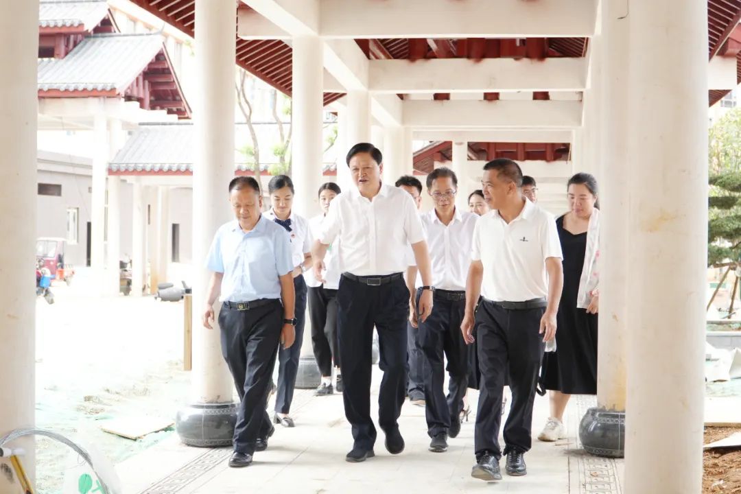 隨后,李萬(wàn)千一行移步至懷仁五調(diào)康養(yǎng)園,先后參觀了五行廣場(chǎng)、五調(diào)康養(yǎng)苑及康養(yǎng)酒店樣板間。在參觀過程中,李萬(wàn)千不僅肯定了園區(qū)的成績(jī),還提出了諸多建設(shè)性意見。他特別強(qiáng)調(diào)了園區(qū)綠化的重要性,指出優(yōu)美的自然環(huán)境對(duì)老年人的身心健康至關(guān)重要,建議園區(qū)未來進(jìn)一步加強(qiáng)園林設(shè)計(jì),打造更加宜人的生態(tài)環(huán)境,真正實(shí)現(xiàn)“綠色環(huán)境健康養(yǎng)老”。
