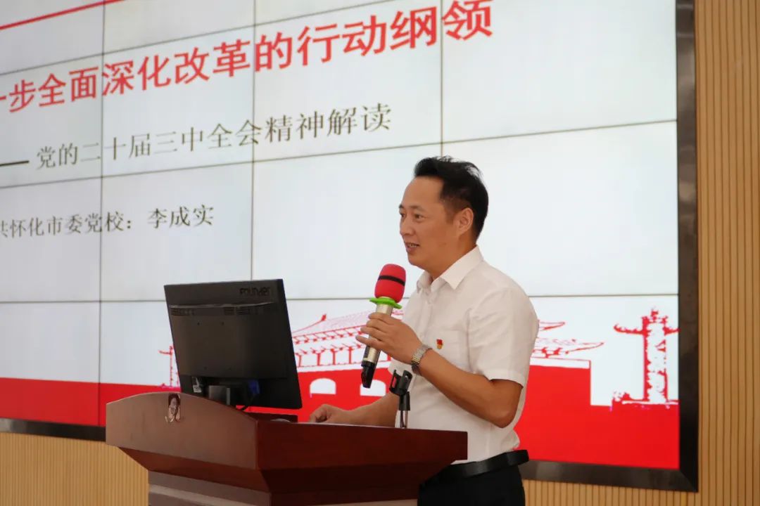 大會特別邀請到鶴城高新區(qū)黨工委書記舒軍,帶來精彩生動的宣講內(nèi)容《學(xué)習(xí)貫徹黨的二十屆三中全會精神》,他深入淺出的宣講方式和貼近生活的示例說明,為在座的同志進(jìn)一步的學(xué)習(xí)打下基礎(chǔ);市委黨校科研部部長李成實教授則以嚴(yán)謹(jǐn)?shù)慕虒W(xué)內(nèi)容,組織大家學(xué)習(xí)課程《新征程上進(jìn)一步全面深化改革的行動綱領(lǐng)---黨的二十屆三中全會精神解讀》,帶來了一場精彩的黨課教育。