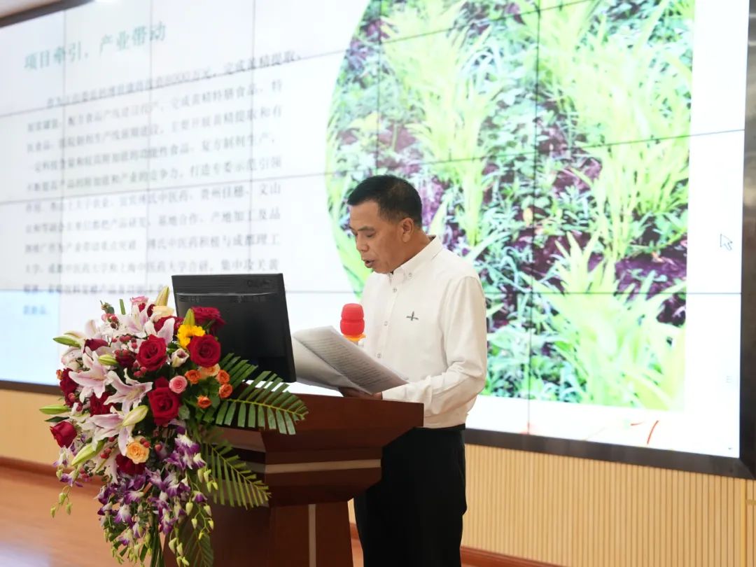 中國(guó)藥膳研究會(huì)專家委員會(huì)副主任、國(guó)家食藥同源產(chǎn)業(yè)科技創(chuàng)新聯(lián)盟副理事長(zhǎng)王北嬰,中國(guó)農(nóng)科院農(nóng)產(chǎn)品加工所研究員、國(guó)家食藥同源產(chǎn)業(yè)科技創(chuàng)新聯(lián)盟秘書長(zhǎng)、黃精研究院院長(zhǎng)王瓊,黃精專委會(huì)副主任委員兼秘書長(zhǎng)、湖南中醫(yī)藥大學(xué)中醫(yī)學(xué)院副院長(zhǎng)謝夢(mèng)洲,黃精專委會(huì)副主任委員、懷化學(xué)院副校長(zhǎng)伍賢進(jìn),黃精專委會(huì)副主任委員、懷化市中醫(yī)藥產(chǎn)業(yè)鏈辦公室常務(wù)副主任、懷化市中藥材辦專職副主任羅文彪,黃精專委會(huì)副主任委員、湖南中醫(yī)藥大學(xué)藥學(xué)院教授李順祥,黃精專委會(huì)湘黔滇渝川聯(lián)盟顧問、貴州大學(xué)農(nóng)學(xué)院教授王華磊,中國(guó)醫(yī)藥物資協(xié)會(huì)藥店品類共建委員會(huì)執(zhí)行會(huì)長(zhǎng)管延民,中科院西雙版納熱帶植物園作物保護(hù)與育種基地副主任劉貴周,國(guó)家食藥同源產(chǎn)業(yè)科技創(chuàng)新聯(lián)盟黃精專委會(huì)主任委員、懷仁集團(tuán)董事長(zhǎng)林承雄等有關(guān)專家領(lǐng)導(dǎo)出席會(huì)議。來自全國(guó)的會(huì)員單位代表近100人參加。懷仁集團(tuán)助理總裁林可可主持會(huì)議。