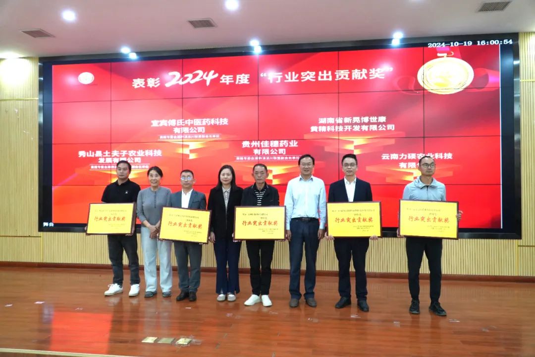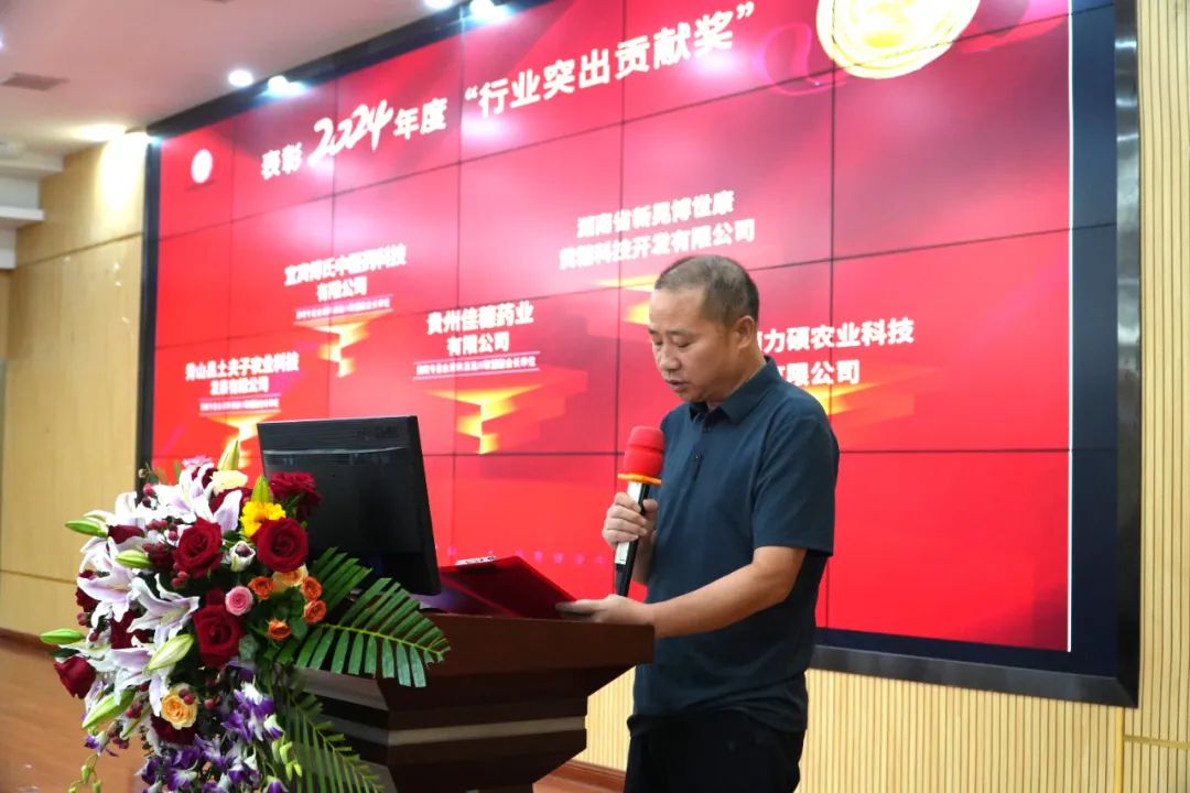 黃精專委會(huì)執(zhí)行秘書長(zhǎng)蔣忠權(quán)宣讀《關(guān)于黃精專委會(huì)表彰2024 年度“行業(yè)突出貢獻(xiàn)獎(jiǎng)”的通報(bào)》,由王北嬰、王瓊、羅文彪三位專家領(lǐng)導(dǎo)為榮獲“行業(yè)突出貢獻(xiàn)獎(jiǎng)”的單位頒獎(jiǎng)。