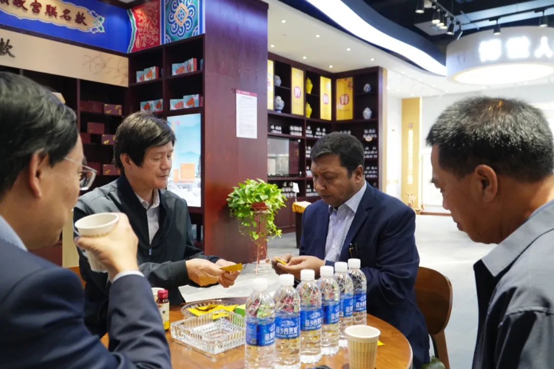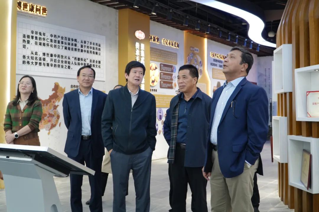 Iqbal院士一行參觀了博世康黃精智慧展廳、五調(diào)康養(yǎng)苑、五調(diào)康養(yǎng)酒店式康養(yǎng)中心,對(duì)懷仁集團(tuán)旗下的懷仁康養(yǎng)、博世康中醫(yī)藥的產(chǎn)業(yè)規(guī)劃有了一定的了解。在博世康展廳,一行人品嘗了博世康黃精枸杞原漿、即食黃精、黃精茶,對(duì)九蒸九制黃精的獨(dú)特口感和香氣連連稱贊,表示這是懷化地區(qū)非常有特色食藥同源產(chǎn)品,味道不錯(cuò)。