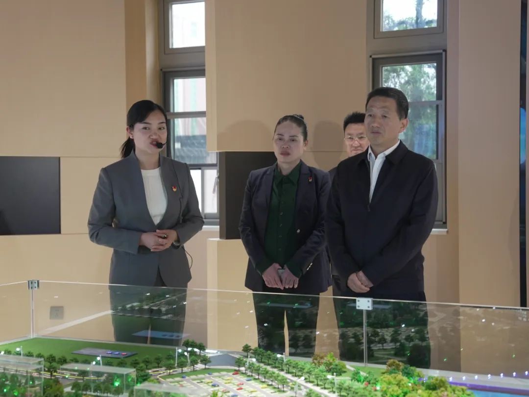 在懷仁集團(tuán)產(chǎn)業(yè)園沙盤前,許忠建書記詳細(xì)聽取了園區(qū)整體介紹和樓棟功能介紹。懷仁陳毳萍書記表示,在市委、市政府及有關(guān)部門的大力支持下,園區(qū)項(xiàng)目建設(shè)進(jìn)展順利,今年八月份已正式開園迎客。