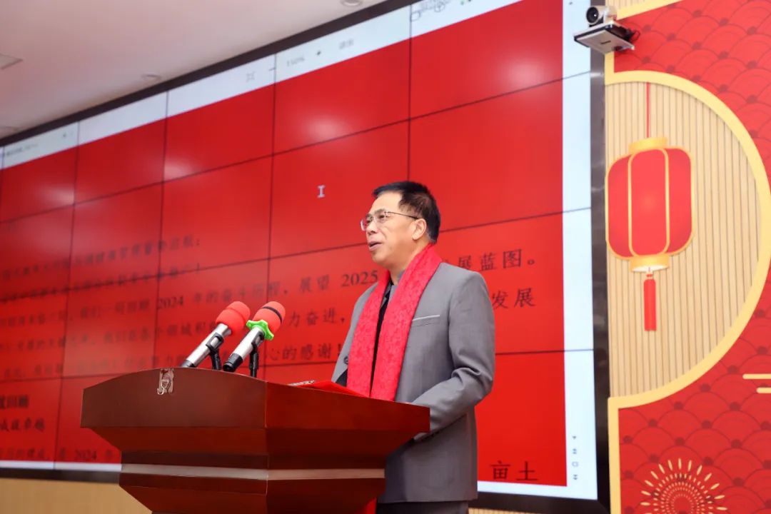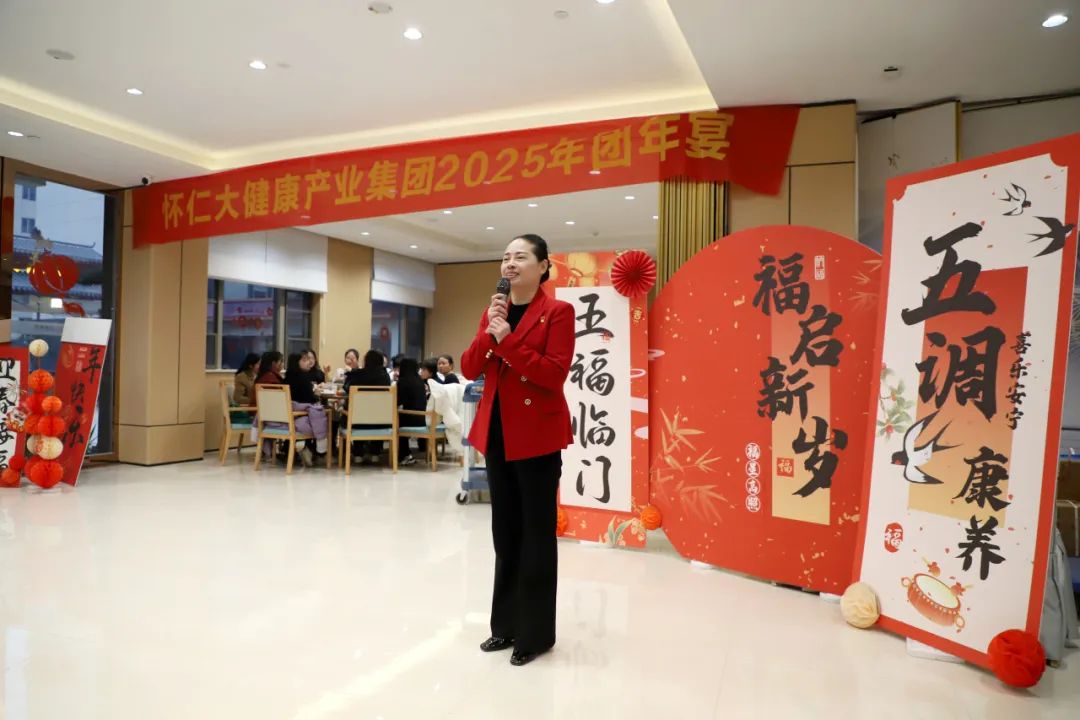 林承雄董事長從五調(diào)康養(yǎng)模式、博世康中醫(yī)藥突破創(chuàng)新、產(chǎn)業(yè)融合發(fā)展、黨建文化建設(shè)、公益擔(dān)當(dāng)踐行社會(huì)責(zé)任五方面總結(jié)回顧了公司過去一年的發(fā)展成果。他說,懷仁大健康產(chǎn)業(yè)園的建成,是 2024 年產(chǎn)業(yè)發(fā)展的重大成果。10 億元的巨額投資,200 畝土地上 30 萬平方米的建筑體量,從康養(yǎng)苑的溫馨舒適到康養(yǎng)酒店的賓至如歸,從康養(yǎng)學(xué)院的知識(shí)傳承到康養(yǎng)研究院的智慧探索,再到康養(yǎng)醫(yī)院的專業(yè)守護(hù)與康養(yǎng)公寓的貼心照料,以及康養(yǎng)膳食中心的美味滋養(yǎng),共同編織成一張全方位、多層次的康養(yǎng)服務(wù)網(wǎng)絡(luò),為人們的健康生活提供了堅(jiān)實(shí)保障,也標(biāo)志著我們?cè)诖蠼】诞a(chǎn)業(yè)的布局邁出了極具分量的一大步,懷仁五調(diào)康養(yǎng)園初步建成,投入試運(yùn)行,得到各方的高度評(píng)價(jià),廣泛贊譽(yù)。2025年懷仁大健康堅(jiān)定邁向 “中國式大中醫(yī)康養(yǎng)引領(lǐng)者” 目標(biāo),打造懷仁五調(diào)康養(yǎng)和博世康雙品牌架構(gòu),多元融合,攜手共進(jìn),深化創(chuàng)新,再創(chuàng)佳績。