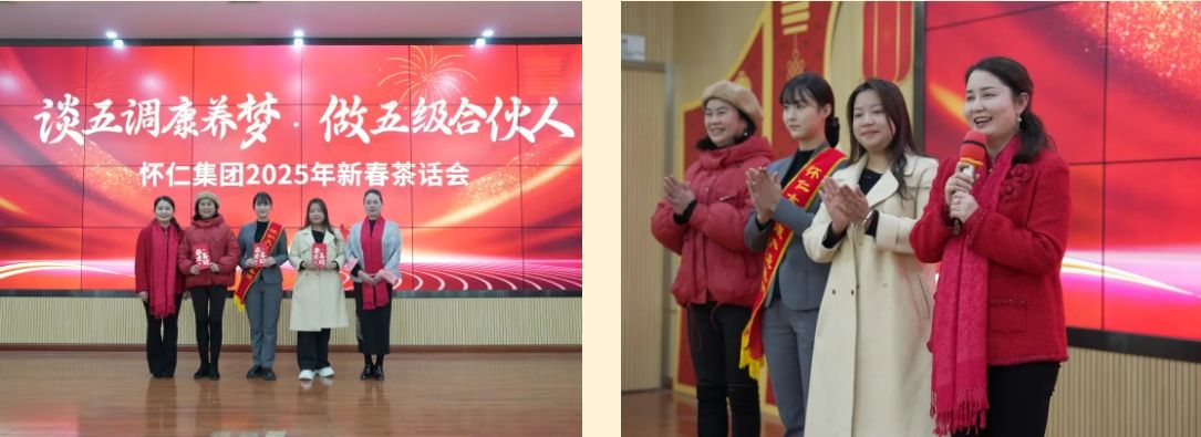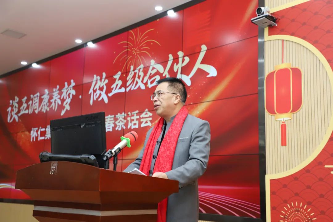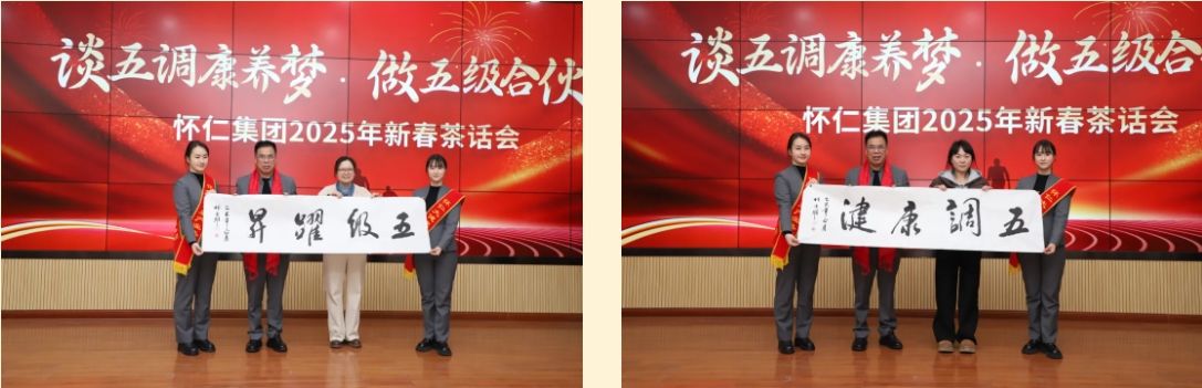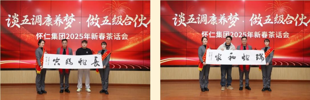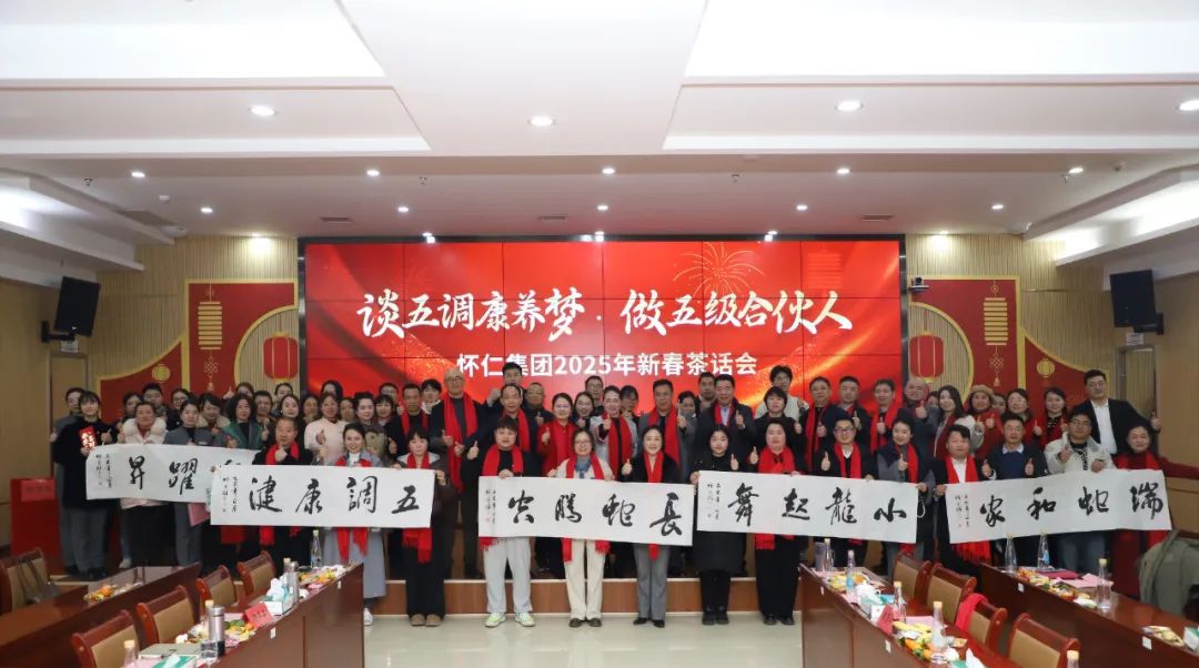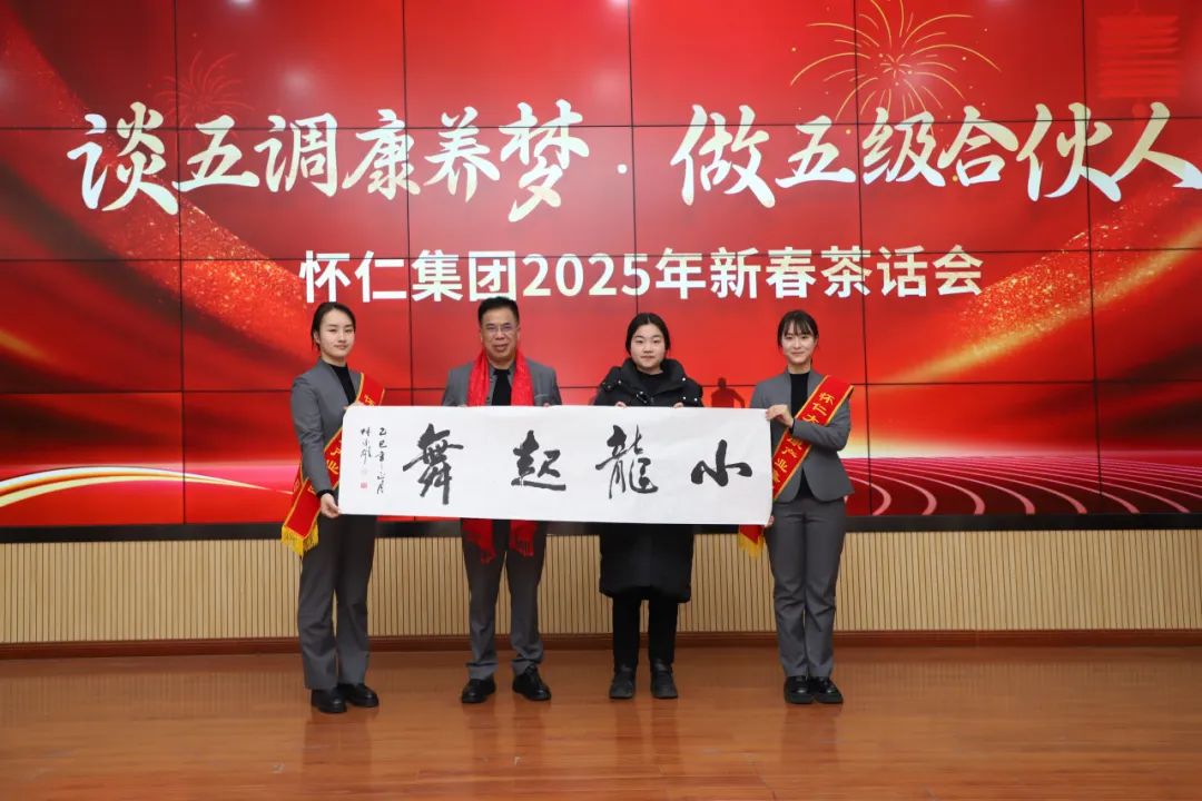 新年伊始,萬象更新。2月5日正月初八上午9點(diǎn),舞龍燈的隊(duì)伍穿梭于懷仁集團(tuán)園區(qū)之間,金色巨龍騰空而起,時(shí)而盤旋而上,時(shí)而俯沖而下,龍身翻騰間,金光閃耀,氣勢(shì)磅礴,將新春的祝福灑向每一個(gè)角落。下午2點(diǎn)30分,來自懷仁集團(tuán)各分子公司及老百姓懷仁藥房的員工代表齊聚一堂,在公司總部12樓會(huì)議室隆重舉行2025年新春茶話會(huì)。此次茶話會(huì)以“談五調(diào)康養(yǎng)夢(mèng),做五級(jí)合伙人”為主題,旨在展望新一年的發(fā)展藍(lán)圖,同時(shí)為全體員工送上新春祝福。