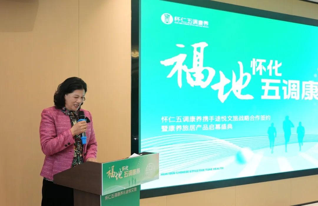 隨后,肖莉杏發(fā)表了重要講話,她說,懷仁康養(yǎng)旅居產(chǎn)品通過中醫(yī)藥文化、生態(tài)療愈與旅居體驗的深度融合,填補了湘西南高端康養(yǎng)市場的空白,為全域旅游產(chǎn)業(yè)鏈延伸開辟了新路徑。她還強調(diào),懷仁與途悅的合作不僅是資源與渠道的深度互補,更是品牌價值疊加的典范,雙方將在康養(yǎng)資源整合、客群精準對接、品牌提升三大領(lǐng)域?qū)崿F(xiàn)突破,為懷化打造"中國西南康養(yǎng)旅居目的地"提供有力支撐。對此,她提到了三點希望:①以生態(tài)為本打造低碳康養(yǎng)樣本;②推動康養(yǎng)與多業(yè)態(tài)聯(lián)動構(gòu)建“全域、全季、全齡”旅居生態(tài)圈;③強化數(shù)字賦能實現(xiàn)智慧化服務升級,助力懷化康養(yǎng)品牌走向全國、邁向世界。