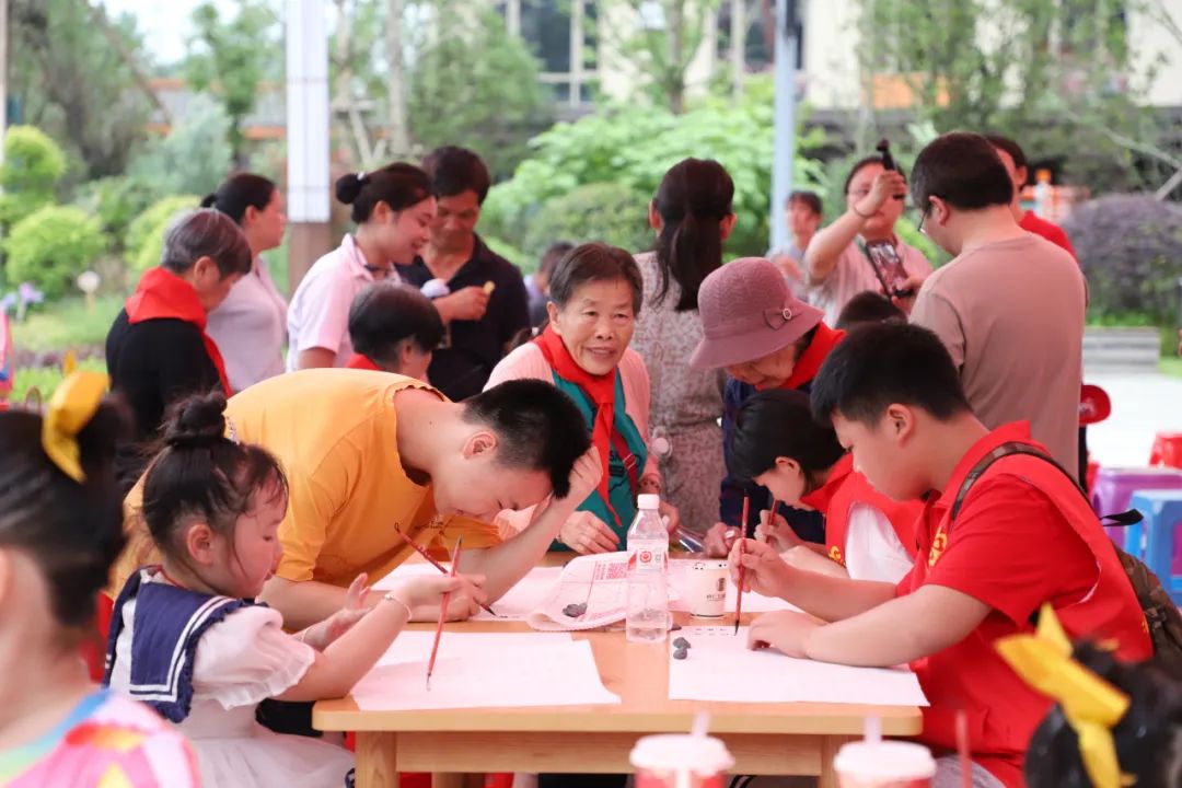 活動(dòng)分為寫書法、做手工、唱紅歌同步進(jìn)行,內(nèi)容豐富,形式多樣,為參與活動(dòng)的兒童和長(zhǎng)者帶來(lái)了難忘的體驗(yàn)。長(zhǎng)者們耐心教導(dǎo)孩子們書寫漢字,一筆一畫間,不僅傳遞了書法技藝,更傳承了中華文化的深厚底蘊(yùn)。