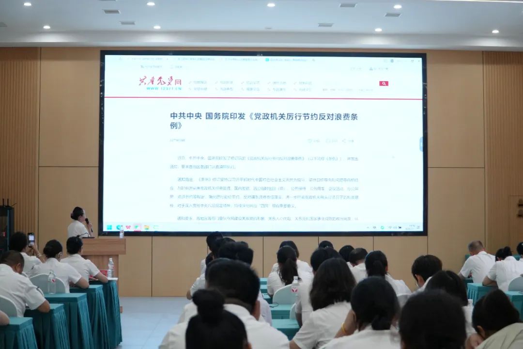 黨委書記陳毳萍同志組織全體與會人員深入學(xué)習(xí)了習(xí)總書記近期重要指示精神、《黨政機關(guān)厲行節(jié)約反對浪費條例》及其他重要學(xué)習(xí)內(nèi)容,引導(dǎo)全體黨員深刻領(lǐng)會核心要義,把握實踐要求,切實把思想和行動統(tǒng)一到黨中央決策部署上來。