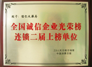 • 全國(guó)誠(chéng)信企業(yè)光榮榜連鎖二屆上榜單位